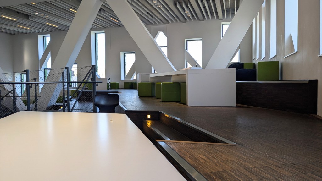 Auf den Plänen der Uni findet man es unter seinem unscheinbaren Namen “SL-Hörsäle”, doch von Studis wird der markant grüne Bau neben der Mensa Westerberg liebevoll “Frosch” genannt. Hier findet ihr jede Menge Platz zum Lernen und das flexible Layout eignet sich hervorragend, um gemeinsam an Projekten oder Gruppenarbeiten zu arbeiten. Ein weiterer Vorteil: Anders als in der Uni-Bib müsst ihr eure Taschen und Mäntel hier nicht einschließen. Das lästige Ein- und Auspacken entfällt also. Eine Jacke braucht ihr jedoch wahrscheinlich eh nicht – der Frosch ist (anders als seine amphibischen Verwandten) im Winter großzügig beheizt. WLAN habt ihr natürlich hier auch, Toiletten im Gebäude sowie Automaten mit Snacks und gekühlten Getränken. Einziges Manko: Steckdosen an den Tischen gibt es meist nur spärlich.
