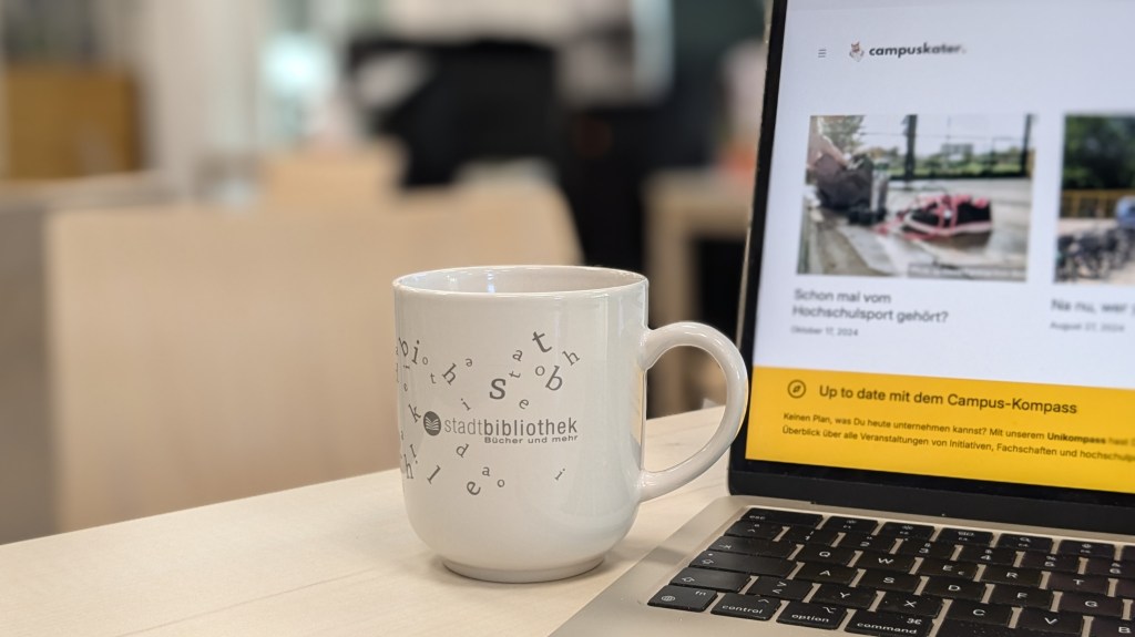 Wer eine Bibliothek-Atmosphäre zum Lernen vorzieht, aber eine Abwechslung zur UB sucht, der ist im Lesecafé der Stadtbibliothek meiner Meinung nach genau richtig. Für den Zugang braucht ihr übrigens keinen Ausweis der Stadtbibliothek! Was mir hier besonders gefällt, ist die Ungezwungenheit im Vergleich zur UB – Jacken und Taschen müsst ihr auch hier nicht einschließen und der kleine Snack für zwischendurch kann natürlich auch mit an den Platz genommen werden. Für 1 € gibt es heiße Getränke aus dem Automaten (ich empfehle die Schokomilch) und natürlich jede Menge zum Schmökern während der Lernpausen – immer wieder entdeckt man hier interessante oder kuriose Magazine und Zeitungen für alle möglichen Interessensgebiete. Schnelles WLAN gibt es hier natürlich auch, Steckdosen gibt es, wenn auch etwas ungünstig gelegen. Und wer die Schokomilch verarbeitet hat, muss weitere 50 Cent für den Toilettengang bezahlen – schade!
